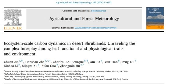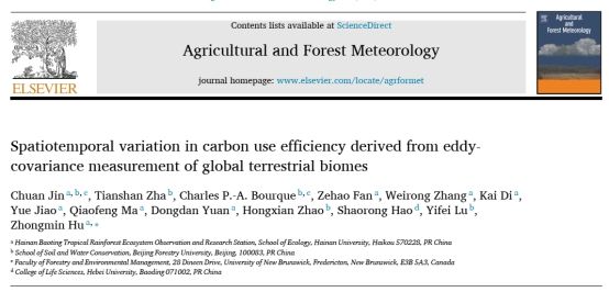 近日,公司“生态服务功能监测与评估”团队成员靳川博士联合北京林业大学、新布伦瑞克大学(加拿大)、西北农林科技大学、海南省生态环境监测中心等单位共同合作,在生态碳水循环领域取得一定研究进展,在生态领域著名期刊接连发表多篇学术论文。论文的第一作者为青年教师靳川博士,通讯作者为胡中民教授,第一单位为伟德国际1946。
