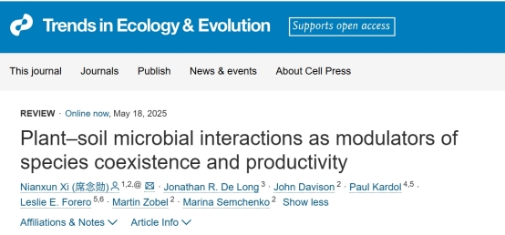 近日,伟德国际1946席念勋以第一作者兼独立通讯作者在Trends in Ecology & Evolution发表了题为“Plant-soil microbial interactions as modulators of species coexistence and productivity”的综述文章,从理论上阐明土壤微生物调节植物物种共存及多样性影响生产力的理论基础,然后据此解释不同微生物类群(专化微生物,泛化微生物)如何调节物种间的生态位和适合度差异,进而通过互补效应和选择效应影响生产力,并据此推断两类机制之间的关联。研究认为不同的土壤微生物类群对植物物种共存和多样性-生产力关系可能有截然不同的影响,具体取决于植物-土壤微生物互作的类型和专化性。此外,与植物产生对抗性关系或者互利性关系的其他类群(比如叶际微生物、传粉者、食草昆虫等)也可能通过类似的机制调节植物物种共存和生态系统功能。塔尔图大学的Marina Semchenko教授、Martin Zobel教授以及瑞典农业大学Paul Kardol教授等为本文的共同作者。