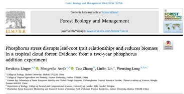 论文以《Phosphorus stress disrupts root–leaf coordination and weakens biomass accumulation in tropical cloud forests》为题,发表在Forest Ecology and Management期刊。博士后Ewuketu Linger Mekonnen为第一作者,龙文兴教授为通讯作者(https://doi.org/10.1016/j.foreco.2025.122726)。