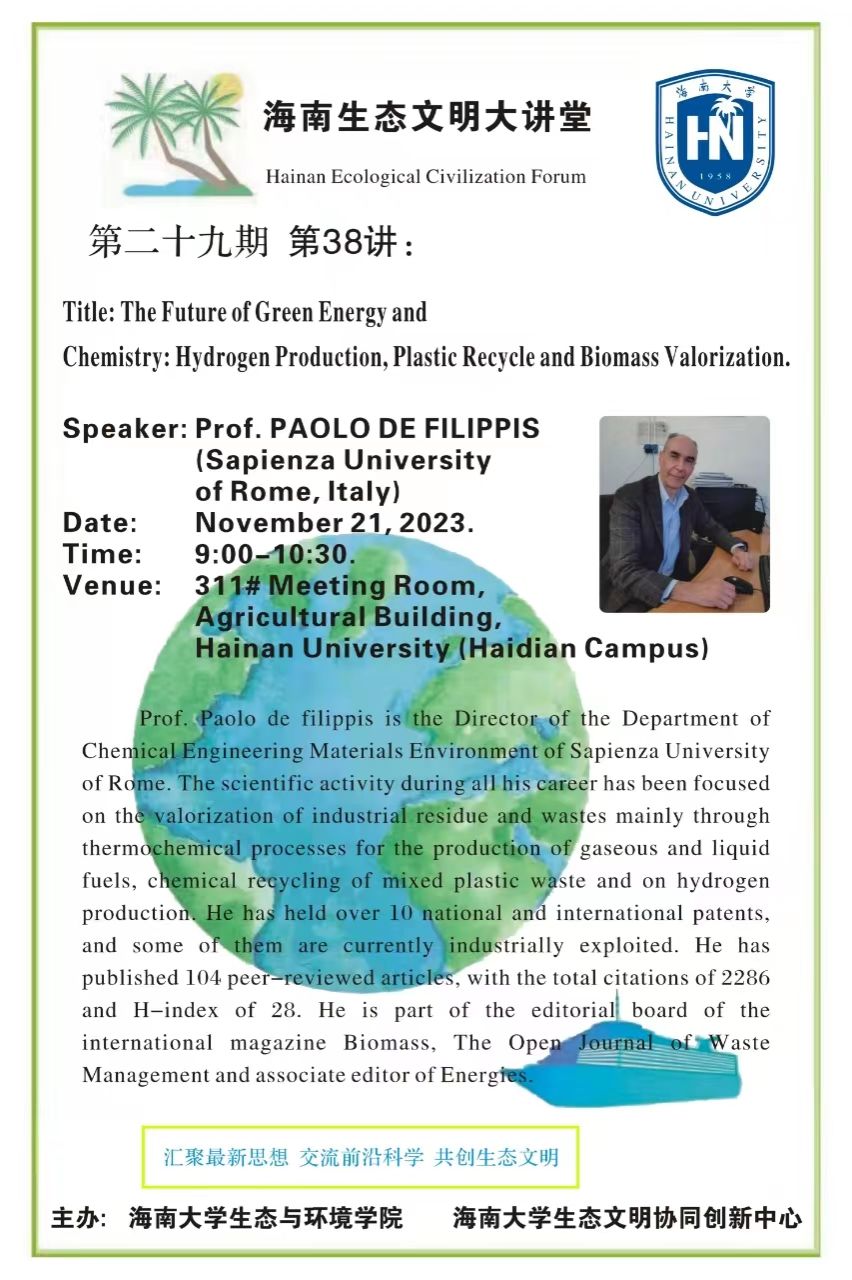 第38讲 Prof.PAOLODEFILIPPIS做客海南生态文明大讲堂