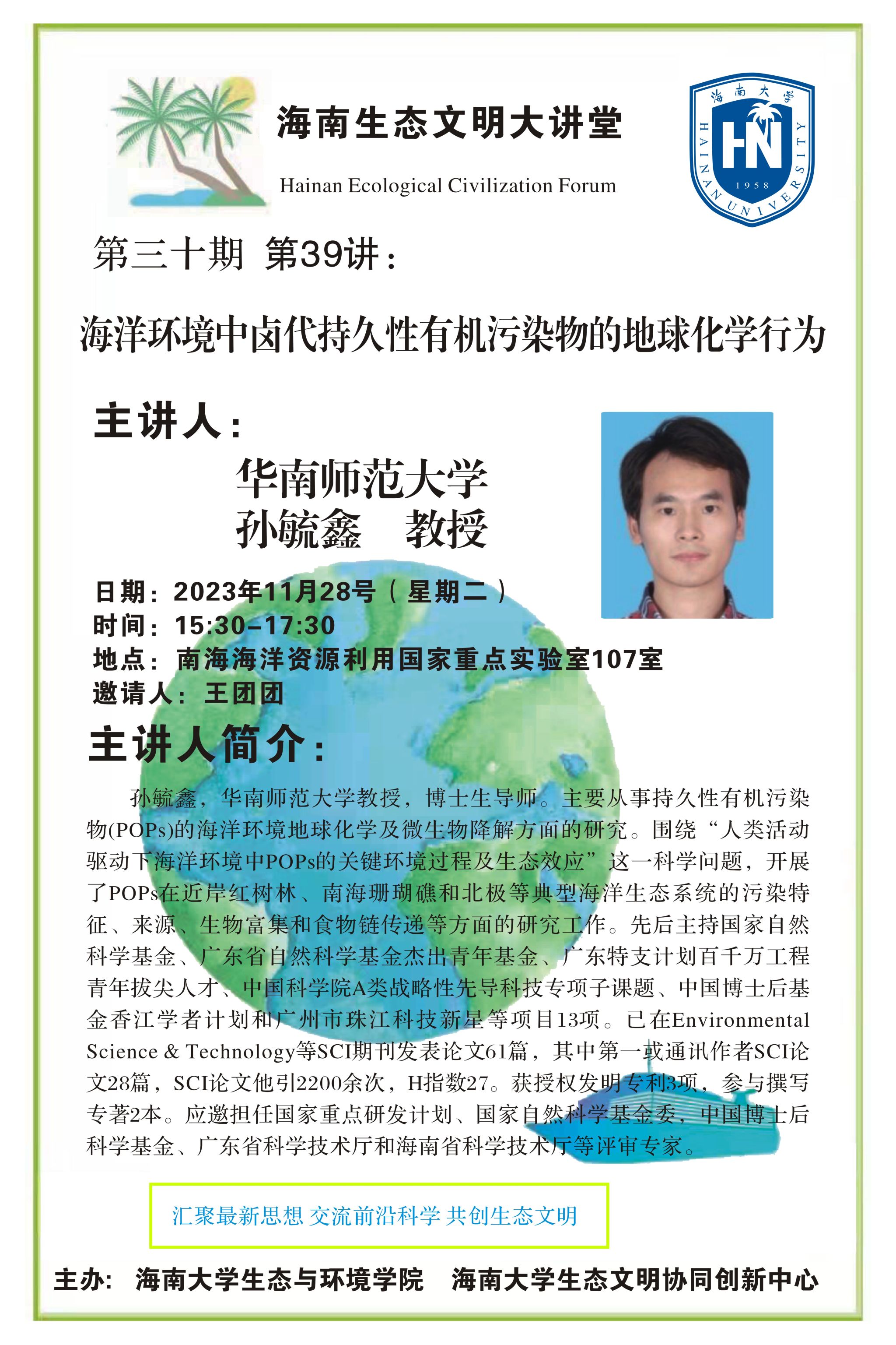 第39讲 孙毓鑫教授做客海南生态文明大讲堂