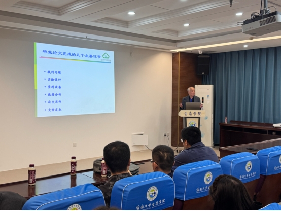 韩兴国研究员以《全球变化生态学试验设计和数据理论归纳》为题,从如何提出科学问题、实验设计、数据分析以及论文写作等角度具体介绍了毕业论文完成的主要环节这些宝贵的经验分享,为与会者们开展科学研究提供了非常有价值的指导。